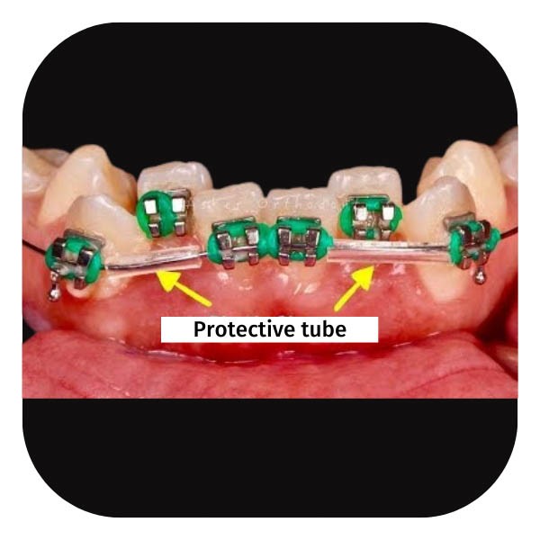 جهت حفاظت از بافت گونه در نواحی که سیم به میزان طولانی درگیر براکت نیست.