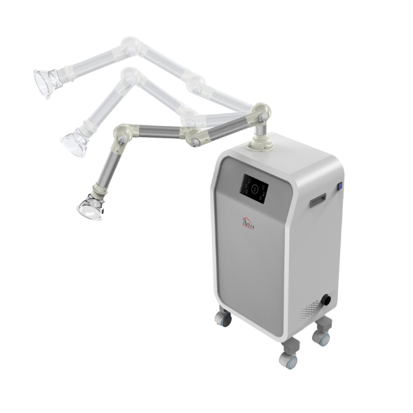ساكشن خارج دهانی External Oral Suction يك سيستم تصفيه و ضد عفونى كننده می باشد، كه برای تمامی درمانهای دندانپزشكی طراحی شده است. اين دستگاه با ايجاد فشار هوای منفى به طور موثر قطرات و آئروسل هاى معلق در هوا را در طول درمان توسط چندين فيلتر جذب کرده و خطر انتقال ويروس بين پزشك و بيمار را كاهش داده و يك لايه ايمنى اضافى ايجاد می كند.