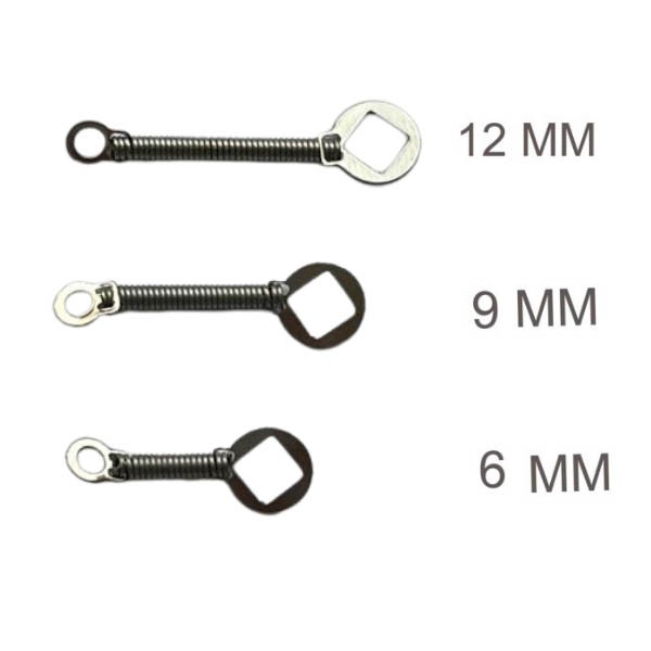 این فنرها را میتوانید تا حدود دو و نیم برابر طول آن ها بکشید. اگر فاصله هوکها 14-8 میلیمتر است از مدل 6 میلیمتری و اگر فاصله 20-11 میلیمتر است از مدل 9 میلیمتری و اگر فاصله 26-14 میلیمتر است از مدل 12 میلیمتری استفاده نمائید. به دلیل اعمال نیروی ملایم و ممتد استفاده از فنرهای آیلت دار توصیه می شود.