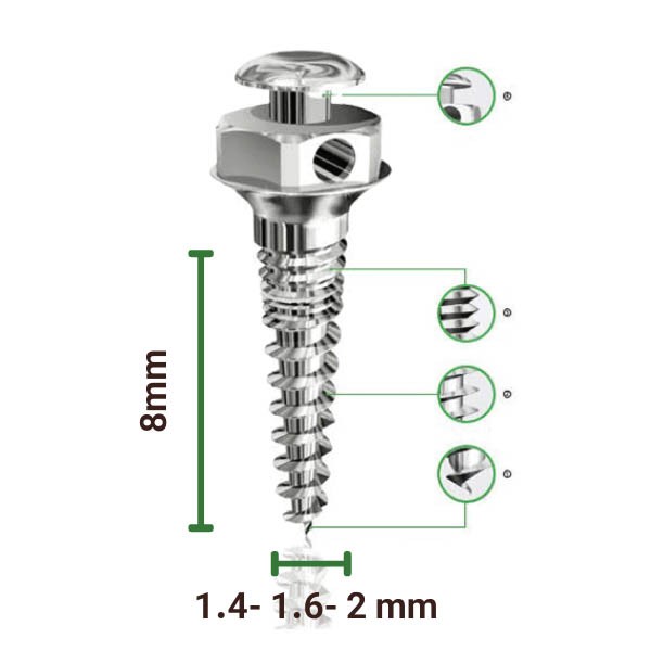 تنها مدل پیچ مینی اسکرو double thread که گیر بالایی در کورتکس استخوان ایجاد می نماید.